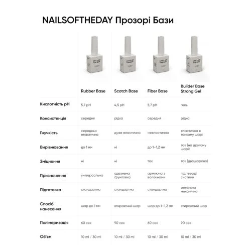 Nailsoftheday Rubber Base – professionelle Grundierung für die Nagelplatte. Dank der modernen Formel füllt die Rubber Base natürliche Unebenheiten des Nagels hervorragend aus, gleicht sie makellos aus und schafft eine perfekte Architektur der Nagelplatte. Nailsoftheday Rubber Base verbindet sich fest mit Farbgellacken, Farb-Basen, Polygelen, Acrylgelen und klassischen Gelen. Sie enthält keine toxischen Stoffe und hat keinen unangenehmen Geruch. Die Base ist hochflexibel, trocknet schnell und zieht sich nicht zusammen.