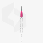 - Der “abgeschrägte Pusher” in Form eines orangefarbenen Metallstäbchens dient zum Anheben und Zurückschieben stark verklebter und rauer Nagelhaut, zum Reinigen des freien Nagelrandes und zum Entfernen von überschüssigem Gellack bei der Maniküre und Pediküre.